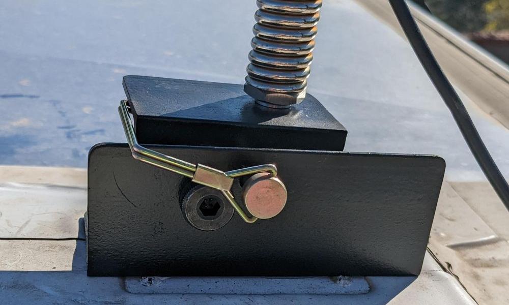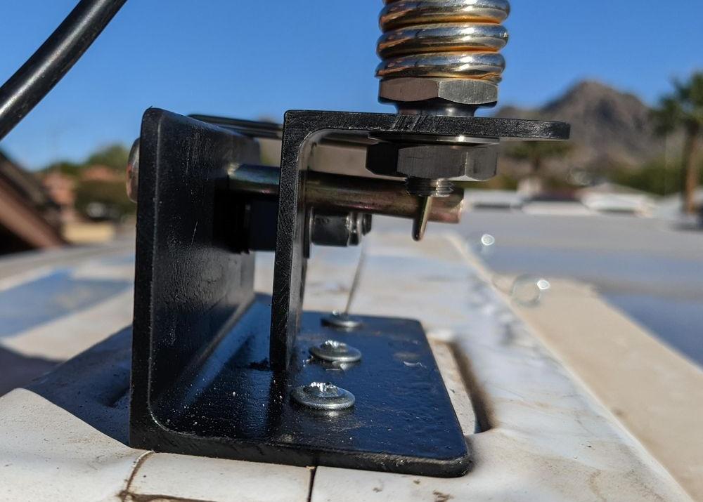The roof mount is just some wood scrap held in place with Eternabond tape, it has been on the roof for over 20,000 miles with my original plastic mount that didn't last.
