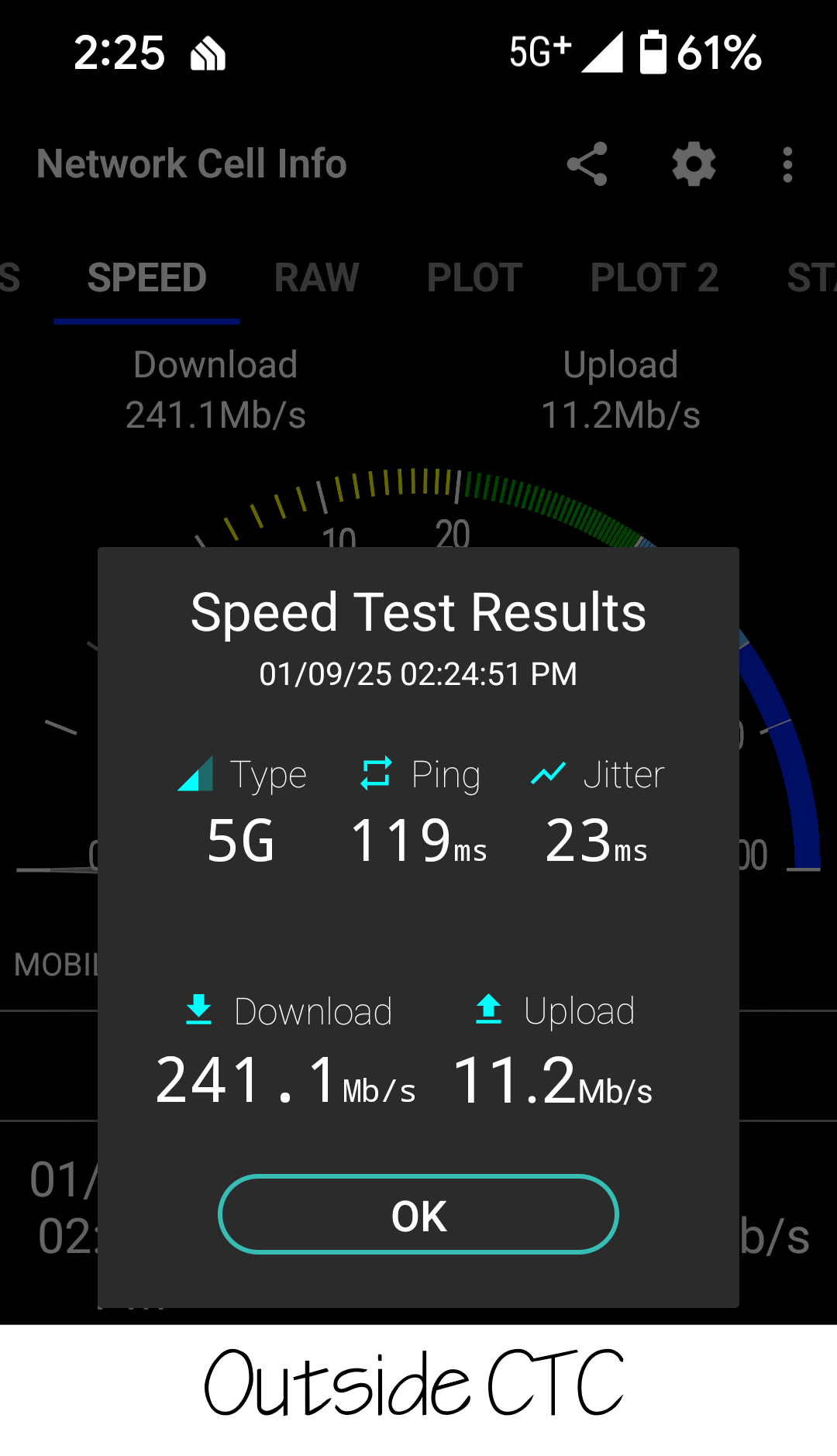 The pictures show the speedtests from outside the CTC, and inside without any other boosters.